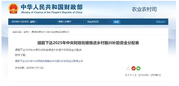 近日,財(cái)政部提前下達(dá)2025年中央財(cái)政銜接推進(jìn)鄉(xiāng)村振興補(bǔ)助資金,全國(guó)資金規(guī)模共計(jì)1593億元。銜接推進(jìn)鄉(xiāng)村振興補(bǔ)助資金是中央及地方財(cái)政為了支持鄉(xiāng)村振興而設(shè)立的一......
