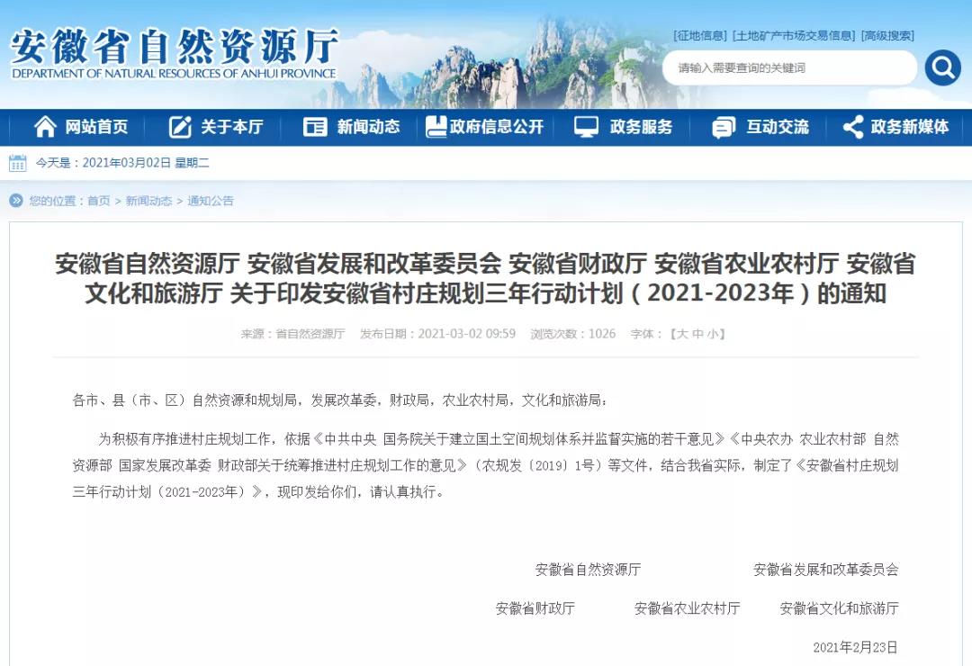 試點(diǎn)先行,分類推進(jìn)!安徽五部門聯(lián)合發(fā)布村莊規(guī)劃三年行動(dòng)計(jì)劃...