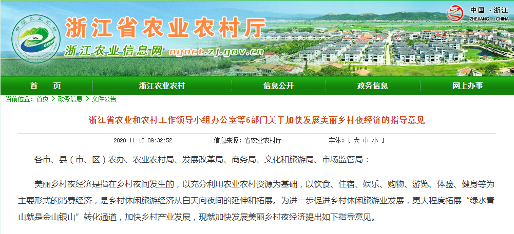 浙江省農業(yè)和農村工作領導小組辦公室等6部門關于加快發(fā)展美麗鄉(xiāng)村夜經(jīng)濟的指導意見 各市、縣(市、區(qū))農辦、農業(yè)農村局、發(fā)展改革局、商務局、文化和旅游局、市場監(jiān)管......