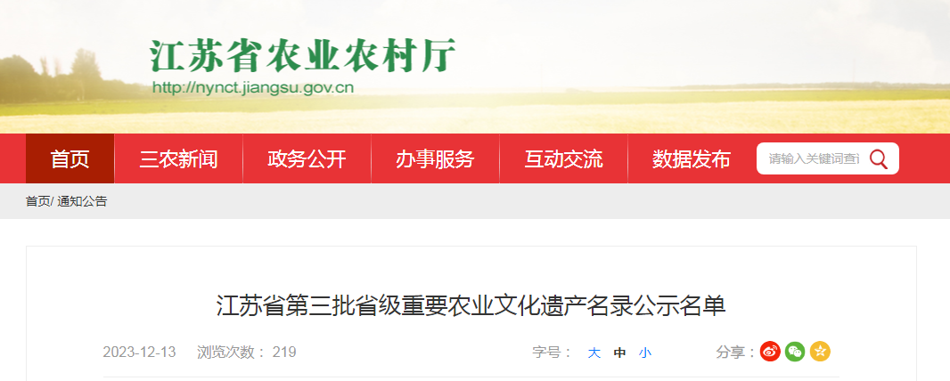 經(jīng)各縣(市、區(qū))申報,設(shè)區(qū)市審核遴選,2023年12月12日,江蘇省農(nóng)業(yè)農(nóng)村廳組織召開第三批省級重要農(nóng)業(yè)文化遺產(chǎn)名錄評審會,評審專家從江蘇省農(nóng)業(yè)文化遺產(chǎn)(農(nóng)耕......