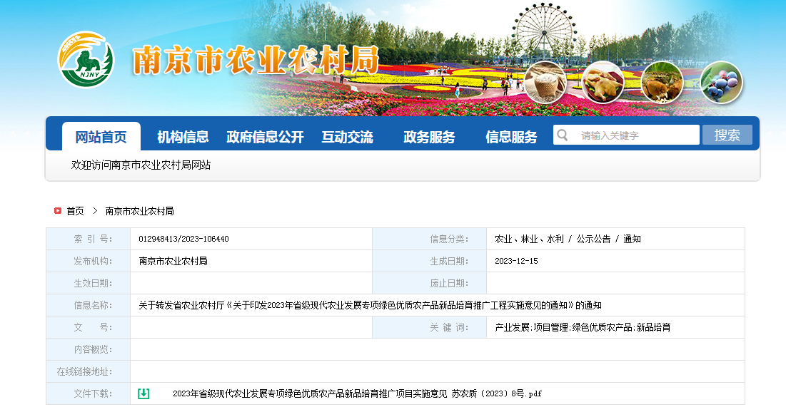 各區(qū)農(nóng)業(yè)農(nóng)村局,相關(guān)單位:為深入推進綠色優(yōu)質(zhì)農(nóng)產(chǎn)品提質(zhì)增效、產(chǎn)業(yè)發(fā)展,加快南京都市現(xiàn)代農(nóng)業(yè)強市建設(shè),現(xiàn)將省農(nóng)業(yè)農(nóng)村廳《關(guān)于印發(fā)2023年省級現(xiàn)代農(nóng)業(yè)發(fā)展專項綠色......