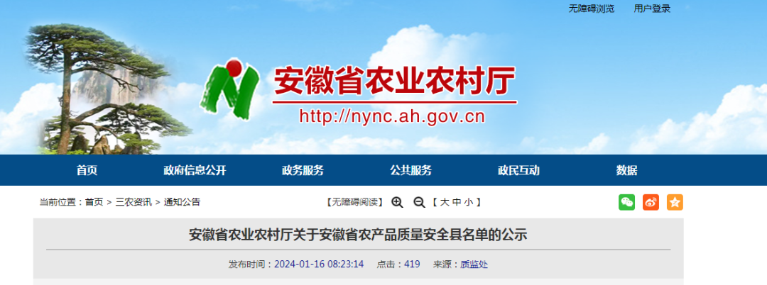 經(jīng)縣自主創(chuàng)建、自查自評和第三方考核評價、省農(nóng)業(yè)農(nóng)村廳廳長辦公會審議,擬命名淮北市烈山區(qū)等7個縣(市、區(qū))為安徽省農(nóng)產(chǎn)品質(zhì)量安全縣(第五批,具體名單附后),現(xiàn)予公......