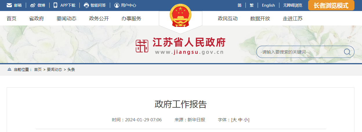 省長許昆林作政府工作報告。各位代表:現(xiàn)在,我代表江蘇省人民政府向大會報告工作,請予審議,并請各位政協(xié)委員提出意見。一、2023年工作回顧過去一年是全面貫徹黨的二......