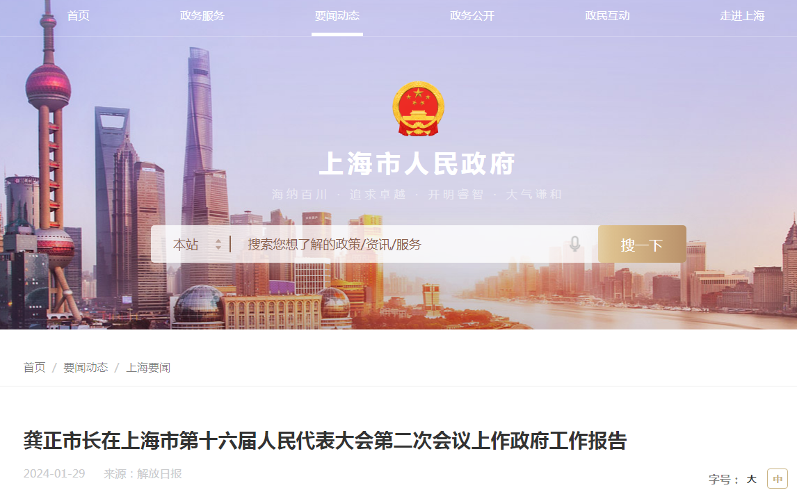 各位代表:??現(xiàn)在,我代表上海市人民政府,向大會報告工作,請予審議。請各位政協(xié)委員和其他列席人員提出意見。??一、2023年工作回顧??過去一年,我們堅持以習(xí)近......