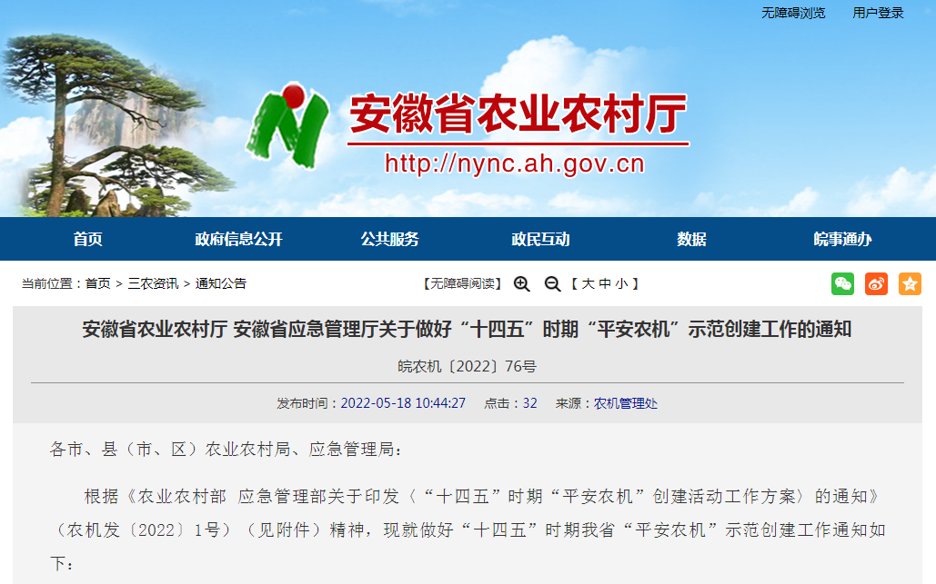 各市、縣(市、區(qū))農(nóng)業(yè)農(nóng)村局、應(yīng)急管理局:????根據(jù)《農(nóng)業(yè)農(nóng)村部 應(yīng)急管理部關(guān)于印發(fā)〈“十四五”時(shí)期“平安農(nóng)機(jī)”創(chuàng)建活動(dòng)工作方案〉的通知》(農(nóng)機(jī)發(fā)〔2022〕......