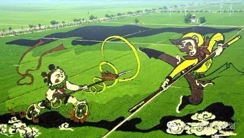稻田畫又名稻田彩繪,是日本農(nóng)民創(chuàng)作的一種藝術(shù)形式,主要是在水田中種植綠色和紫色葉水稻,栽種時先在農(nóng)田里用傳統(tǒng)畫線器畫出九宮格,依圖樣定出坐標(biāo),再牽線描出圖樣或字體輪廓,最后種上彩色秧苗,隨著水稻生長,就會呈現(xiàn)出預(yù)先規(guī)劃的圖形或文字。