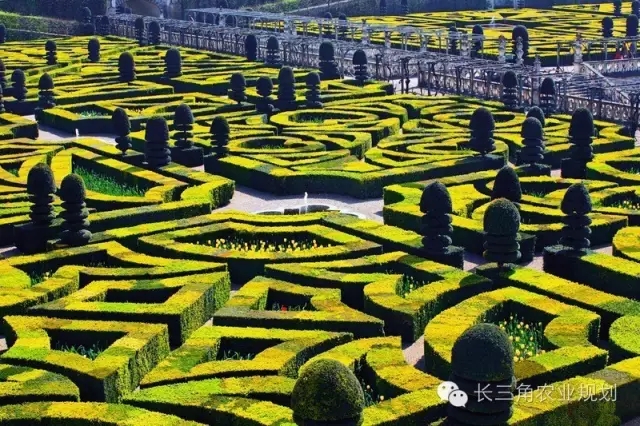 模紋綠籬的使用起源于公元5世紀(jì)的古羅馬。凡是由萌蘗力極強的灌木或小喬木,以近距離的株行距密植而形成的緊密結(jié)構(gòu)的規(guī)則的種植形式,都被稱之為綠籬或者綠墻。在造園過程中經(jīng)過精心布置與整形修剪最后形成精美的幾何圖案式效果的綠籬統(tǒng)稱為模紋圖案式綠籬,簡稱為模紋綠籬。