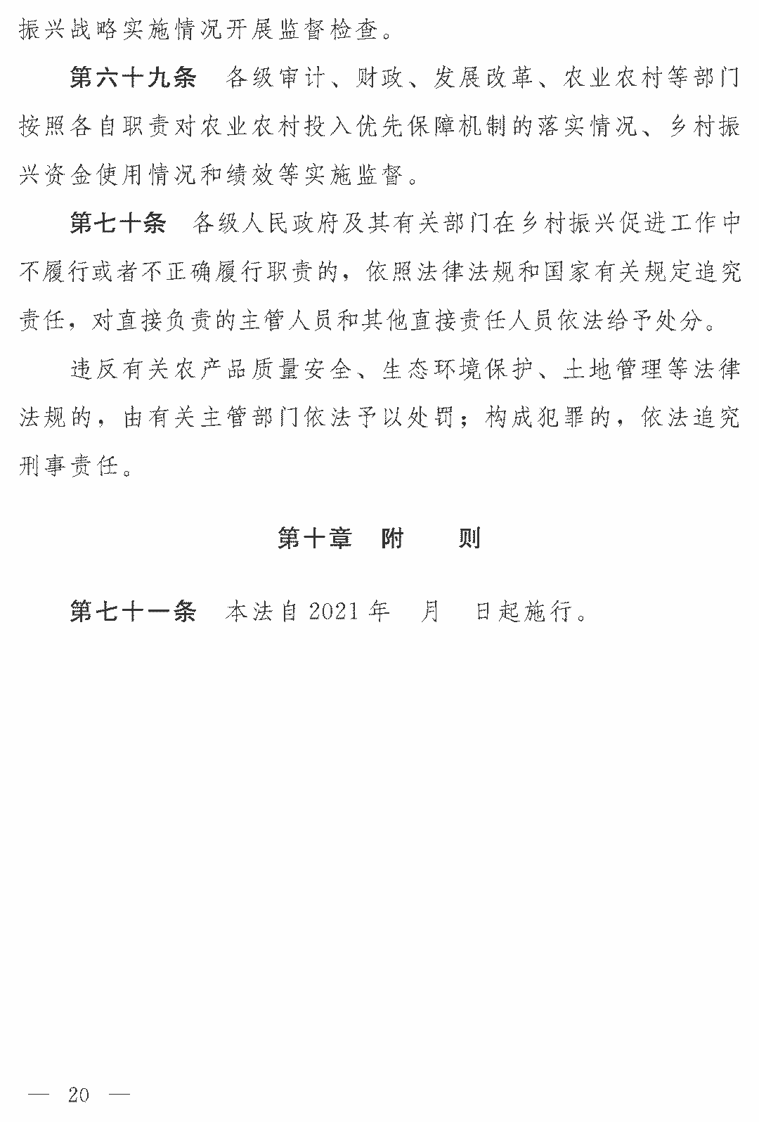 日前,《中華人民共和國(guó)鄉(xiāng)村振興促進(jìn)法(草案二次審議稿)》在中國(guó)人大網(wǎng)公布并征求意見,截止日期為2021年1月29日。