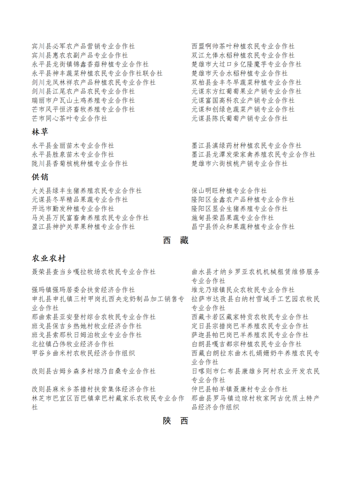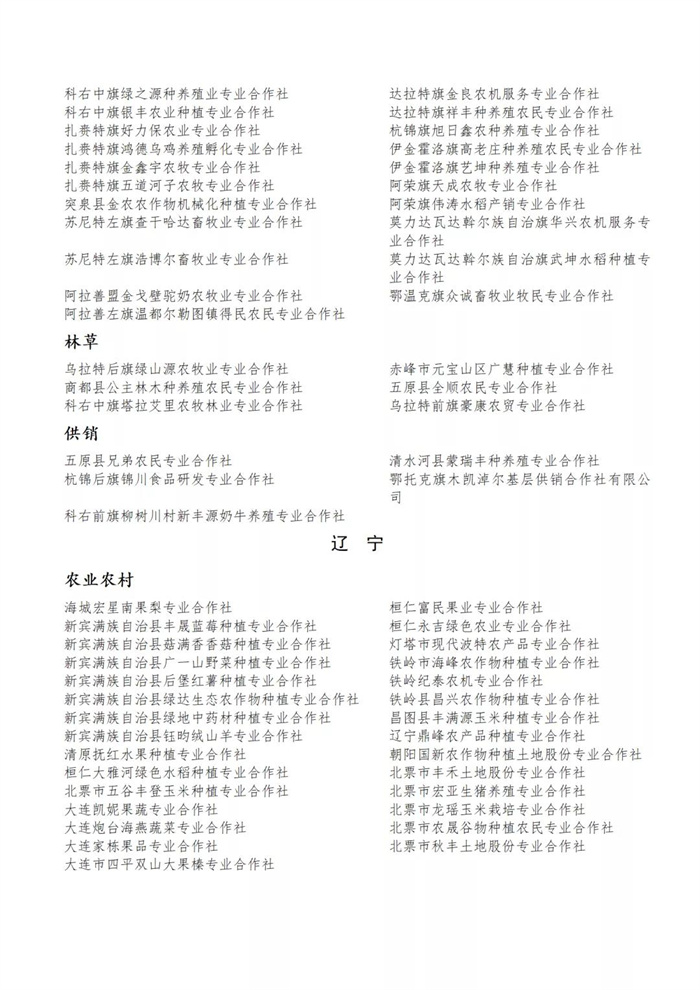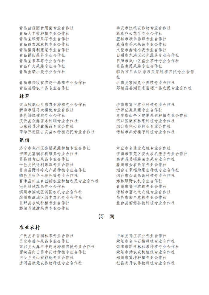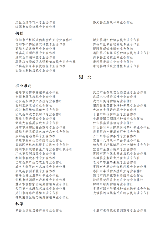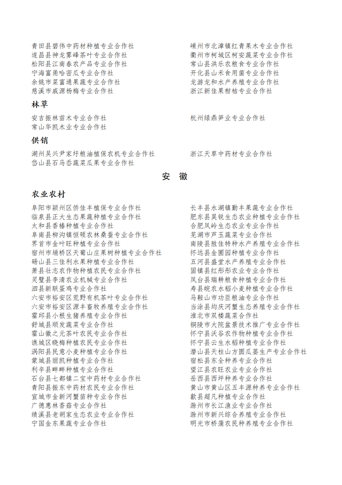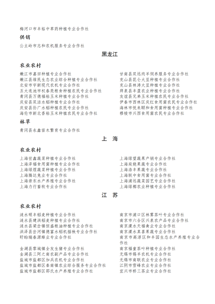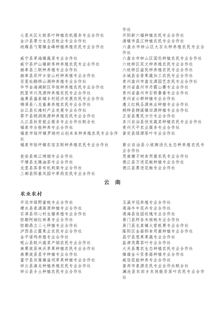 根據《國家農民合作社示范社評定及監(jiān)測辦法》(農經發(fā)〔2019〕5號)有關規(guī)定,農業(yè)農村部會同全國農民合作社發(fā)展部際聯(lián)席會議成員單位開展了國家農民合作社示范社評定,現(xiàn)將名單進行公示,公示期為2021年5月12日至5月20日,聯(lián)系電話:010—59193128。