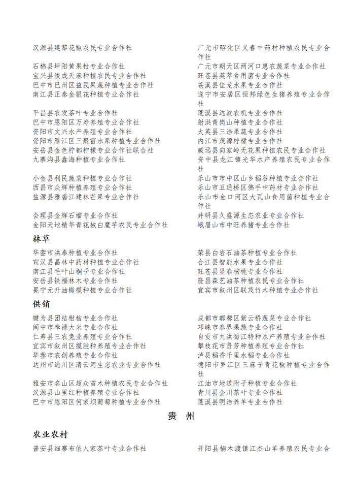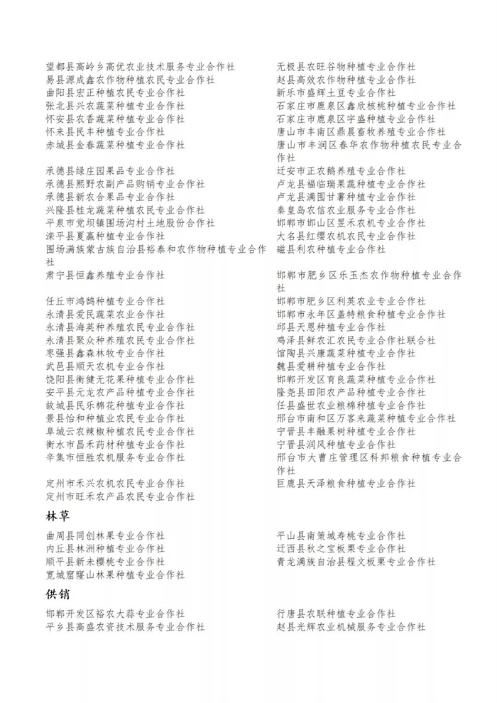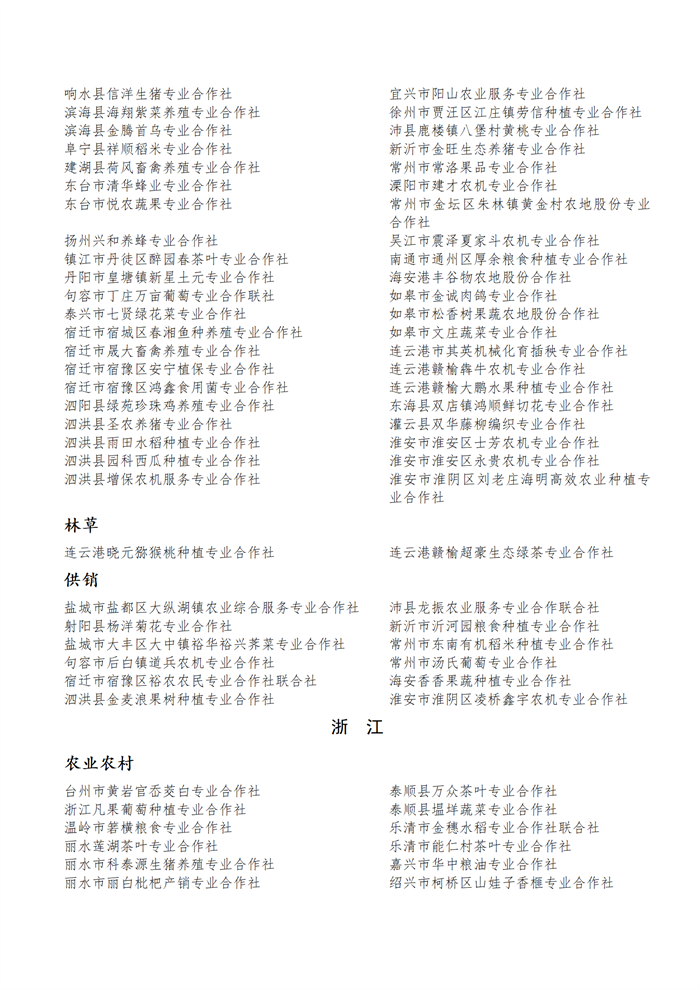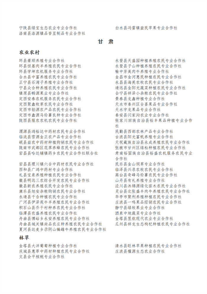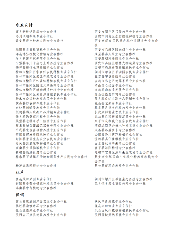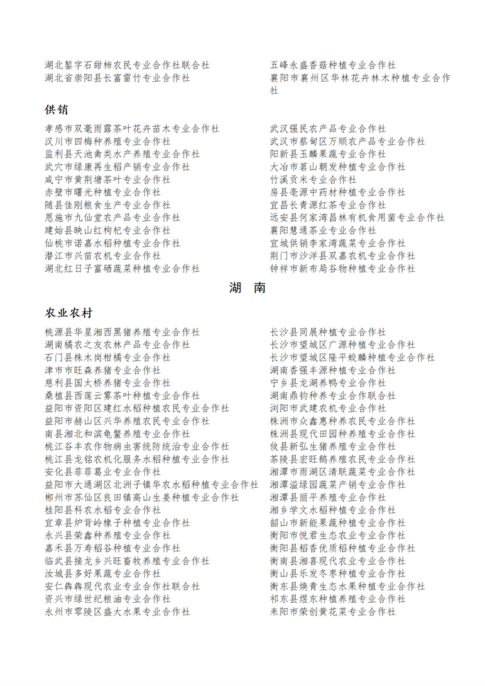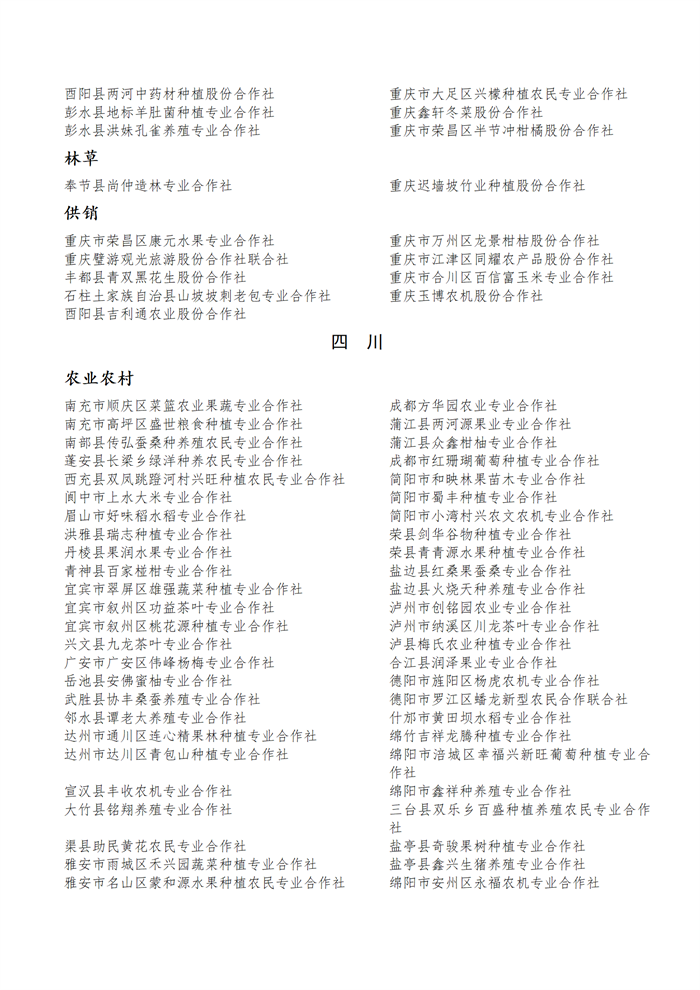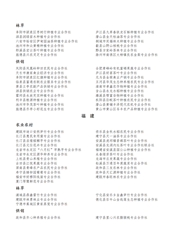 根據《國家農民合作社示范社評定及監(jiān)測辦法》(農經發(fā)〔2019〕5號)有關規(guī)定,農業(yè)農村部會同全國農民合作社發(fā)展部際聯(lián)席會議成員單位開展了國家農民合作社示范社評定,現(xiàn)將名單進行公示,公示期為2021年5月12日至5月20日,聯(lián)系電話:010—59193128。