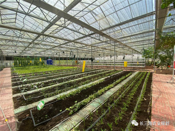 隨后調(diào)研組來到蘇星農(nóng)場與農(nóng)場負(fù)責(zé)人進行座談。調(diào)研組了解到該農(nóng)場是溧水區(qū)首個生態(tài)農(nóng)業(yè)及光伏發(fā)電互補項目,農(nóng)場約有600畝大棚,大棚里種植有機蔬菜,與江蘇省農(nóng)科院和南京市蔬菜研究所都有合作。農(nóng)場種植的有機蔬菜專供公司食堂和內(nèi)部員工,蔬菜價格低于市場價格。由于是專供銷售不可避免產(chǎn)生浪費,但是農(nóng)場會將多余的蔬菜喂養(yǎng)池塘的魚或者將其發(fā)酵為有機肥料施用在農(nóng)田里。農(nóng)場的大棚都是農(nóng)戶承包來種植的,農(nóng)場為農(nóng)戶提供水肥一體化種植條件以及蔬菜種植技術(shù),農(nóng)戶負(fù)責(zé)種植、日常維護和采收,年收入最高可達8萬/人。