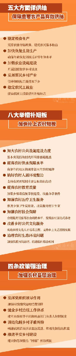 韓長賦表示,2020年是全面建成小康社會(huì)目標(biāo)實(shí)現(xiàn)之年,是全面打贏脫貧攻堅(jiān)戰(zhàn)收官之年。完成這兩大目標(biāo)任務(wù),脫貧攻堅(jiān)還有一些最后的堡壘必須攻克,全面小康“三農(nóng)”領(lǐng)域還有一些突出的短板必須補(bǔ)上。面對國內(nèi)外風(fēng)險(xiǎn)挑戰(zhàn)明顯上升、經(jīng)濟(jì)下行壓力加大的復(fù)雜局面,穩(wěn)住農(nóng)業(yè)基本盤、發(fā)揮“三農(nóng)”壓艙石作用至關(guān)重要。做好2020年“三農(nóng)”工作具有特殊重要性,必須毫不松懈,持續(xù)加力,確保脫貧攻堅(jiān)戰(zhàn)圓滿收官,確保農(nóng)村同步全面建成小康社會(huì)。韓長賦介紹,今年中央一號文件對“三農(nóng)”工作作出了全面部署。明確了工作重點(diǎn),對標(biāo)對表全面建成小康社會(huì)目標(biāo),集中力量完成打贏脫貧攻堅(jiān)戰(zhàn)和補(bǔ)上全面小康“三農(nóng)”領(lǐng)域突出短板兩大重點(diǎn)任務(wù)。強(qiáng)化了政策舉措,針對基層干部群眾反映強(qiáng)烈的問題和工作落實(shí)中存在的薄弱環(huán)節(jié),提出了一些含金量高、可操作性強(qiáng)的政策舉措,進(jìn)一步強(qiáng)化了補(bǔ)短板的政策支撐保障。記者:脫貧攻堅(jiān)還有哪些堡壘,收官之年將如何收官?韓長賦:打贏脫貧攻堅(jiān)戰(zhàn)是全面建成小康社會(huì)的底線任務(wù)和標(biāo)志性指標(biāo),是我們黨向人民作出的莊嚴(yán)承諾。黨的十八大以來,黨中央把脫貧攻堅(jiān)擺到治國理政的突出位置,全黨全社會(huì)總動(dòng)員。截至2019年底,農(nóng)村貧困人口累計(jì)減少9500多萬,平均每年減貧1300萬人以上,770個(gè)貧困縣已經(jīng)或擬摘帽退出,貧困發(fā)生率降至2%以下,創(chuàng)造了我國減貧史上的最好成績。2020年是脫貧攻堅(jiān)戰(zhàn)收官之年,還有一些最后的堡壘必須攻克。這些堡壘主要體現(xiàn)在兩個(gè)方面:一個(gè)是深度貧困地區(qū),這些地區(qū)自然條件較差、基礎(chǔ)條件薄弱、發(fā)展滯后、公共服務(wù)不足,是多年想啃沒啃下來的硬骨頭。必須集中力量進(jìn)行強(qiáng)力幫扶,確保如期脫貧。還有一個(gè)是特殊貧困群體,也就是老弱病殘等困難群體,對這類缺乏勞動(dòng)能力的群體,通過統(tǒng)籌各類社會(huì)保障政策,實(shí)現(xiàn)應(yīng)保盡保、應(yīng)兜盡兜。在脫貧攻堅(jiān)戰(zhàn)收官之年要做好以下工作:一是完成好剩余脫貧任務(wù)。目前預(yù)計(jì)還有300萬農(nóng)村貧困人口沒有脫貧,還剩下50多個(gè)貧困縣尚未摘帽。重點(diǎn)是在普遍實(shí)現(xiàn)“兩不愁”基礎(chǔ)上,全面解決“三保障”和飲水安全問題,確保剩余貧困人口如期脫貧。二是鞏固脫貧成果防止返貧。已經(jīng)攻下來的陣地必須牢牢守住,對已脫貧人口開展全面排查,查補(bǔ)漏洞和缺項(xiàng),同時(shí)加強(qiáng)對不穩(wěn)定脫貧戶、邊緣戶動(dòng)態(tài)識別,及時(shí)將返貧人口和新發(fā)生貧困人口納入幫扶。三是做好考核驗(yàn)收和宣傳工作。嚴(yán)格執(zhí)行貧困退出標(biāo)準(zhǔn)和程序,堅(jiān)決杜絕數(shù)字脫貧、虛假脫貧,確保脫貧成果經(jīng)得起歷史檢驗(yàn)。四是研究接續(xù)推進(jìn)減貧工作。打贏脫貧攻堅(jiān)戰(zhàn)以后,鞏固脫貧成果任務(wù)仍然繁重,減貧事業(yè)不會(huì)劃上句號。要抓緊研究建立解決相對貧困的長效機(jī)制,推動(dòng)減貧戰(zhàn)略和工作體系平穩(wěn)轉(zhuǎn)型,將解決相對貧困問題納入實(shí)施鄉(xiāng)村振興戰(zhàn)略統(tǒng)籌安排。記者:“三農(nóng)”領(lǐng)域還有哪些必須補(bǔ)上的短板?韓長賦:全面建成小康社會(huì),最突出的短板在“三農(nóng)”。農(nóng)村基礎(chǔ)設(shè)施不足、公共服務(wù)落后是農(nóng)民群眾反映最強(qiáng)烈的民生問題,也是城鄉(xiāng)發(fā)展不平衡、農(nóng)村發(fā)展不充分最直觀的體現(xiàn)。文件對標(biāo)對表全面建成小康社會(huì)目標(biāo)任務(wù),提出了農(nóng)村基礎(chǔ)設(shè)施和公共服務(wù)8個(gè)方面的短板。農(nóng)村公共基礎(chǔ)設(shè)施方面,主要是推動(dòng)“四好農(nóng)村路”示范創(chuàng)建提質(zhì)擴(kuò)面,在完成具備條件的建制村通硬化路和通客車任務(wù)基礎(chǔ)上,有序推進(jìn)較大人口規(guī)模自然村(組)等通硬化路建設(shè),支持村內(nèi)道路建設(shè)和改造。農(nóng)村供水保障方面,重點(diǎn)是全面完成農(nóng)村飲水安全鞏固提升工程任務(wù),有條件的地區(qū)推進(jìn)城鄉(xiāng)供水一體化。農(nóng)村人居環(huán)境整治方面,重點(diǎn)是分類推進(jìn)農(nóng)村廁所革命,全面推進(jìn)農(nóng)村生活垃圾治理,梯次推進(jìn)生活污水治理,廣泛開展村莊清潔行動(dòng)。完成農(nóng)村人居環(huán)境整治三年行動(dòng)任務(wù),干干凈凈迎小康。農(nóng)村教育方面,硬件上,加強(qiáng)鄉(xiāng)鎮(zhèn)寄宿制學(xué)校建設(shè),統(tǒng)籌小規(guī)模學(xué)校布局,改善農(nóng)村辦學(xué)條件。軟件上,加強(qiáng)鄉(xiāng)村學(xué)校教師隊(duì)伍建設(shè),落實(shí)教師管理、工資待遇、職稱評定、住房保障等政策。農(nóng)村基層醫(yī)療衛(wèi)生服務(wù)方面,在建好縣鄉(xiāng)村三級醫(yī)療衛(wèi)生機(jī)構(gòu)、消除醫(yī)療服務(wù)空白點(diǎn)的同