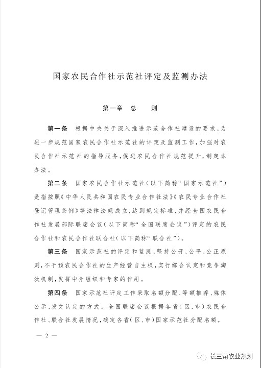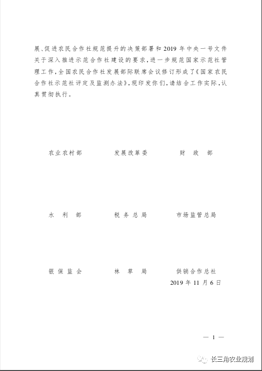 為深入貫徹落實黨中央、國務(wù)院關(guān)于突出抓好農(nóng)民合作社發(fā)展、促進農(nóng)民合作社規(guī)范提升的決策部署和2019年中央一號文件關(guān)于深入推進示范合作社建設(shè)的要求,進一步規(guī)范國家示范社管理工作,全國農(nóng)民合作社發(fā)展部際聯(lián)席會議修訂形成了《國家農(nóng)民合作社示范社評定及監(jiān)測辦法》,現(xiàn)印發(fā)你們,請結(jié)合工作實際,認真貫徹執(zhí)行。
