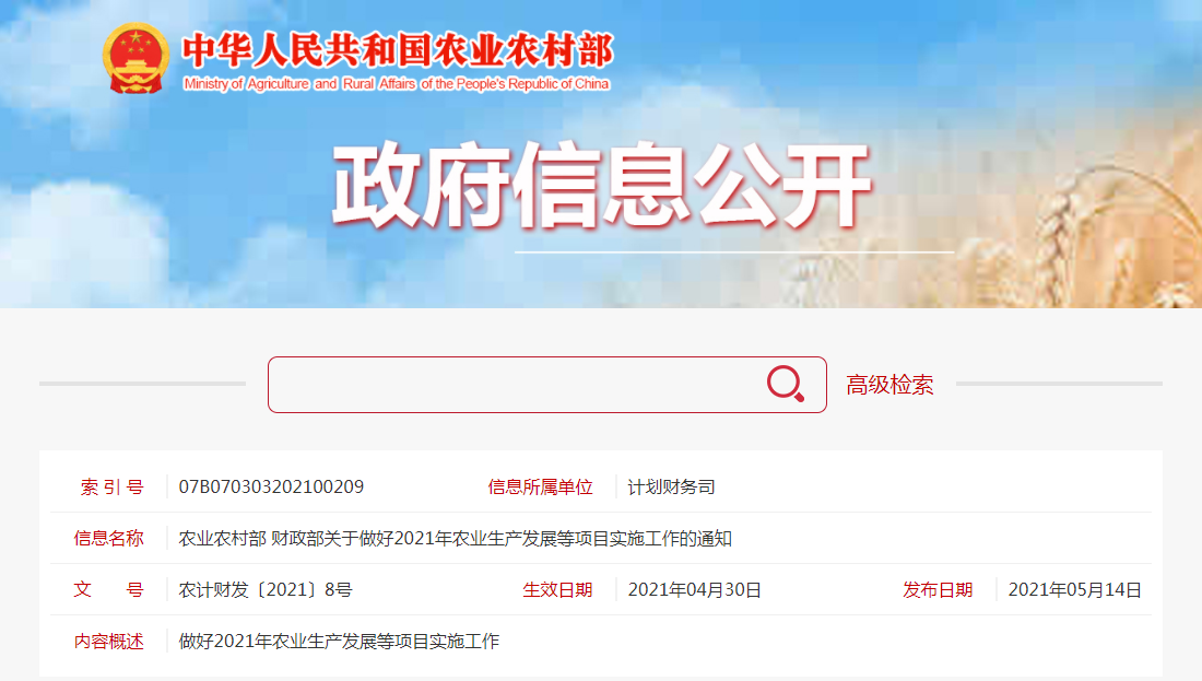 農(nóng)業(yè)農(nóng)村部 財(cái)政部關(guān)于做好2021年農(nóng)業(yè)生產(chǎn)發(fā)展等項(xiàng)目實(shí)施工作的通知各省、自治區(qū)、直轄市及計(jì)劃單列市農(nóng)業(yè)農(nóng)村(農(nóng)牧)、畜牧獸醫(yī)、漁業(yè)廳(局、委)、財(cái)政廳(局),......