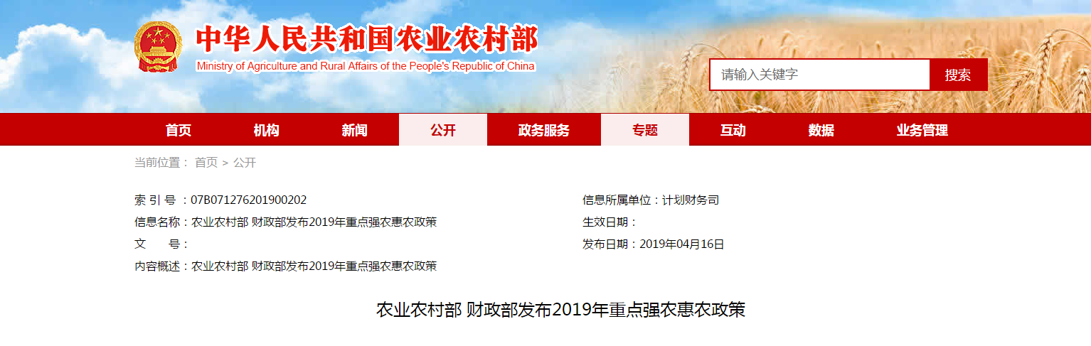 2019年,貫徹落實中央農(nóng)村工作會議、中央1號文件和全國“兩會”精神,圍繞實施鄉(xiāng)村振興戰(zhàn)略,深入推進農(nóng)業(yè)供給側(cè)結(jié)構(gòu)性改革,國家將繼續(xù)加大支農(nóng)投入,強化項目統(tǒng)籌整......
