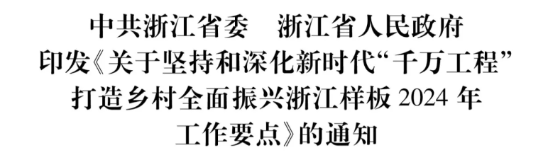 各市、縣(市、區(qū))黨委和人民政府,省直屬各單位: 現(xiàn)將《關(guān)于堅(jiān)持和深化新時(shí)代“千萬工程”打造鄉(xiāng)村全面振興浙江樣板2024年工作要點(diǎn)》印發(fā)給你們,請(qǐng)結(jié)合實(shí)際認(rèn)真......
