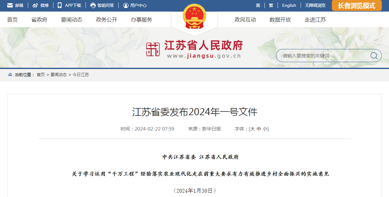 為深入貫徹習近平總書記關于“三農”工作的重要論述和對江蘇工作重要講話重要指示精神,全面落實《中共中央、國務院關于學習運用“千村示范、萬村整治”工程經驗有力有效推......