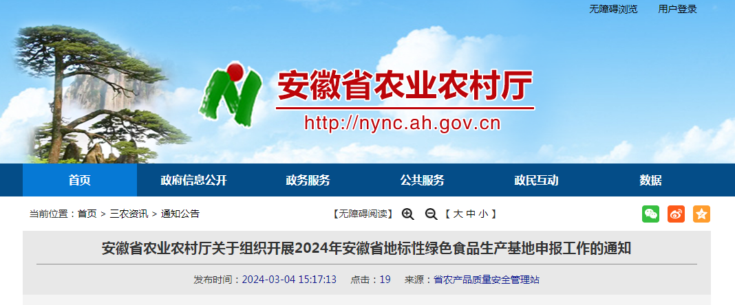 各市、縣(市、區(qū))農業(yè)農村局:根據(jù)《安徽省農業(yè)農村廳關于印發(fā)安徽省地標性綠色食品生產基地建設管理辦法(試行)的通知》(皖農綠〔2024〕13號 )要求,現(xiàn)就開展......