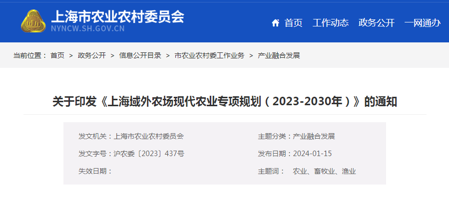 各相關單位:??為推動上海域外農場農業(yè)高質量發(fā)展,根據(jù)市政府辦公廳《關于促進上海域外農場高質量發(fā)展的實施意見》(滬府辦發(fā)〔2022〕20號)要求,我委組織編制了......