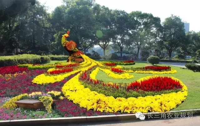 模紋的概念不局限于規(guī)則的植物配置運用,還包含兩個意思:模紋可以指景觀設(shè)計中規(guī)則式的模紋花壇,也可以指自然式的植物模紋、植物的模紋色彩。因為圖案在景觀設(shè)計各要素中都被運用得淋漓盡致,所以模紋也可包括植物模紋藝術(shù)、地形模紋藝術(shù)、建筑模紋藝術(shù)、道路鋪裝模紋藝術(shù)等。由此,對農(nóng)業(yè)景觀設(shè)計中的模紋概念可以歸納擴(kuò)展為:農(nóng)業(yè)景觀設(shè)計中運用材料、色彩、植物、文字、形式美法則等手段在農(nóng)田大棚、展館活動、農(nóng)副產(chǎn)品等設(shè)計要素中構(gòu)成的各式圖案,以營造創(chuàng)新的農(nóng)業(yè)景觀效果。