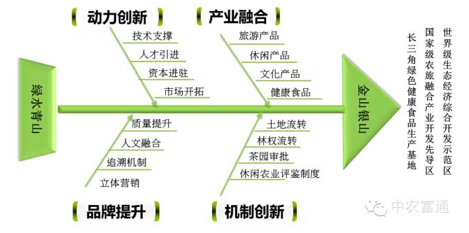 介于安吉縣擁有良好的生態(tài)優(yōu)勢(shì),研究團(tuán)隊(duì)認(rèn)為:安吉縣農(nóng)林產(chǎn)業(yè)的發(fā)展應(yīng)通過(guò)“動(dòng)力創(chuàng)新、產(chǎn)業(yè)融合、品牌提升、機(jī)制創(chuàng)新”等途徑實(shí)現(xiàn)由“綠水青山”到“金山銀山”的轉(zhuǎn)變,使安吉農(nóng)林業(yè)朝著現(xiàn)代化、生態(tài)化的方向發(fā)展。
