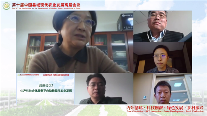本次研討會的下半場是圓桌會議環(huán)節(jié),包括兩個主題。圓桌會議1由中國農(nóng)業(yè)科學院研究員夏英主持,會議圍繞“生產(chǎn)性社會化服務(wù)平臺助推現(xiàn)代農(nóng)業(yè)發(fā)展”這一主題展開討論。特邀嘉賓有南京數(shù)溪智能科技有限公司副總裁馮欣欣、新華網(wǎng)溯源中國技術(shù)總監(jiān)葛振斌和北京中農(nóng)富興農(nóng)業(yè)信息科技有限公司總經(jīng)理劉佳。各位嘉賓分別結(jié)合自身企業(yè)的業(yè)務(wù)板塊和實踐經(jīng)驗就存在問題及發(fā)展模式交流探討,內(nèi)容涵蓋了農(nóng)業(yè)生產(chǎn)智能管理、農(nóng)產(chǎn)品質(zhì)量追溯、溫室數(shù)字智能系統(tǒng)、縣域農(nóng)業(yè)生產(chǎn)社會化服務(wù)體系等方面,為我們分享了現(xiàn)代農(nóng)業(yè)社會化服務(wù)、智能農(nóng)業(yè)平臺生產(chǎn)在實際生產(chǎn)中的具體做法。與會嘉賓一致認為,在國家大力支持和鼓勵青年返鄉(xiāng)創(chuàng)業(yè)的背景下,企業(yè)應(yīng)積極吸納這些鄉(xiāng)村新生力量,肩負起探索解決農(nóng)業(yè)農(nóng)村傳統(tǒng)領(lǐng)域的現(xiàn)代化改造升級問題,以新技術(shù)應(yīng)用解決行業(yè)痛點,助力鄉(xiāng)村振興。