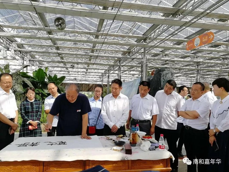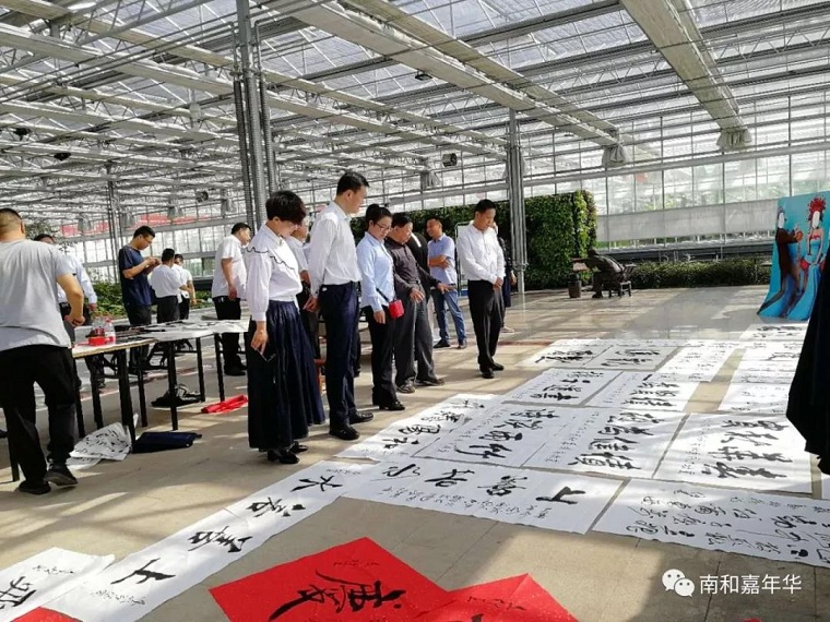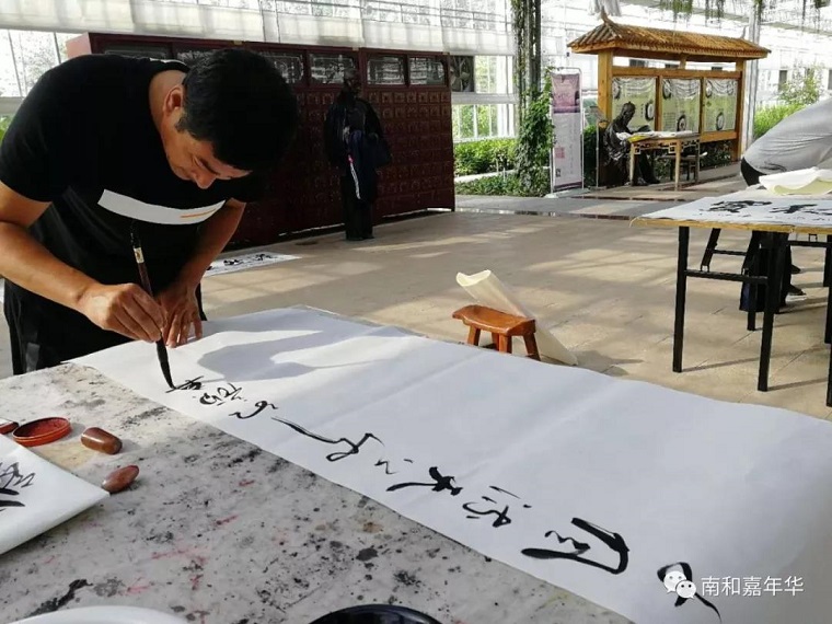 開(kāi)幕式后,領(lǐng)導(dǎo)一行視察書(shū)法筆會(huì)。在筆會(huì)現(xiàn)場(chǎng),南和書(shū)畫(huà)家們揮毫潑墨,爭(zhēng)相獻(xiàn)藝,用飽蘸濃墨的筆觸表達(dá)著對(duì)生活的熱愛(ài)和對(duì)佳節(jié)的祝福。一幅幅精美作品贏得觀眾的嘖嘖稱(chēng)贊。前來(lái)參觀的書(shū)畫(huà)愛(ài)好者們也相互交流,場(chǎng)面氣氛十分熱烈。