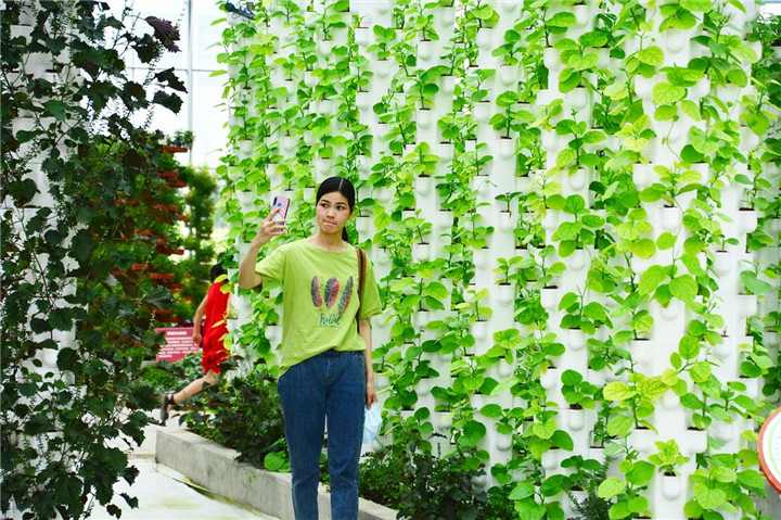 ▼用中國南和設施農(nóng)業(yè)產(chǎn)業(yè)集群的水果黃瓜、水果彩椒拼出的“母親”造型。