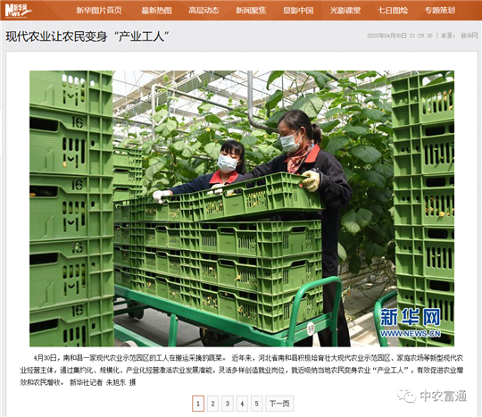 ▼4月30日,新華網(wǎng)報(bào)道中國(guó)南和設(shè)施農(nóng)業(yè)產(chǎn)業(yè)集群。 近年來(lái),河北省南和縣積極培育壯大現(xiàn)代農(nóng)業(yè)示范園區(qū)、家庭農(nóng)場(chǎng)等新型現(xiàn)代農(nóng)業(yè)經(jīng)營(yíng)主體,通過(guò)集約化、規(guī)?;a(chǎn)業(yè)化經(jīng)營(yíng)激活農(nóng)業(yè)發(fā)展?jié)撃?,靈活多樣創(chuàng)造就業(yè)崗位,就近吸納當(dāng)?shù)剞r(nóng)民變身農(nóng)業(yè)“產(chǎn)業(yè)工人”,有效促進(jìn)農(nóng)業(yè)增效和農(nóng)民增收。新華社記者 朱旭東 攝