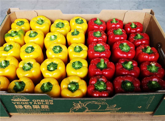 ▼中國南和設(shè)施農(nóng)業(yè)產(chǎn)業(yè)集群生產(chǎn)的進(jìn)入成熟期的水果彩椒果實(shí)經(jīng)人工采摘后,運(yùn)輸?shù)疆a(chǎn)品分級包裝車間,通過自動(dòng)裝卸系統(tǒng)和包裝系統(tǒng)進(jìn)行分級包裝。