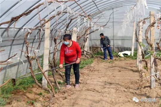 ▼4月16日北京青年報(bào)記者走進(jìn)中農(nóng)富通位于通州區(qū)潞城鎮(zhèn)賈后疃村西的科研示范基地—北京國際都市農(nóng)業(yè)科技園,工作人員正在棚里種植茄子、給梨樹疏花、為無花果殺菌、給葡萄園除雜草等。圖為孫師傅在給梨樹疏花。他說:“將一束花里中間的花去掉只留兩個(gè)邊花,用來保證梨的品質(zhì)?!?/span>