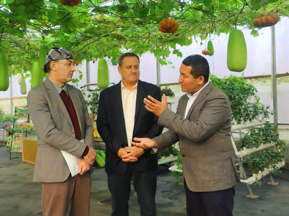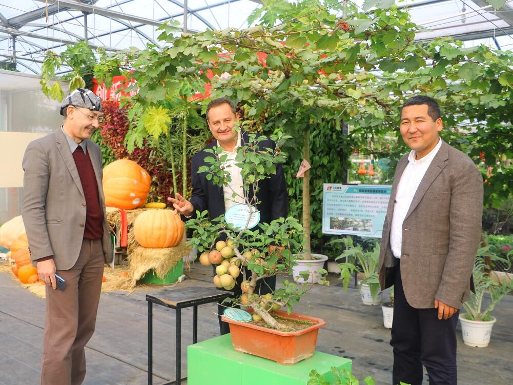 ▼11月6日,德國駐華使館農(nóng)業(yè)參贊Axel Wildner與中德農(nóng)業(yè)中心執(zhí)行主任Dr. Jurgen Ritter到中農(nóng)富通示范基地——北京國際都市農(nóng)業(yè)科技園參觀考察,參贊對科技園高新農(nóng)業(yè)技術(shù)和新奇特品種大加贊賞,希望中德農(nóng)業(yè)未來能夠加強合作與交流。