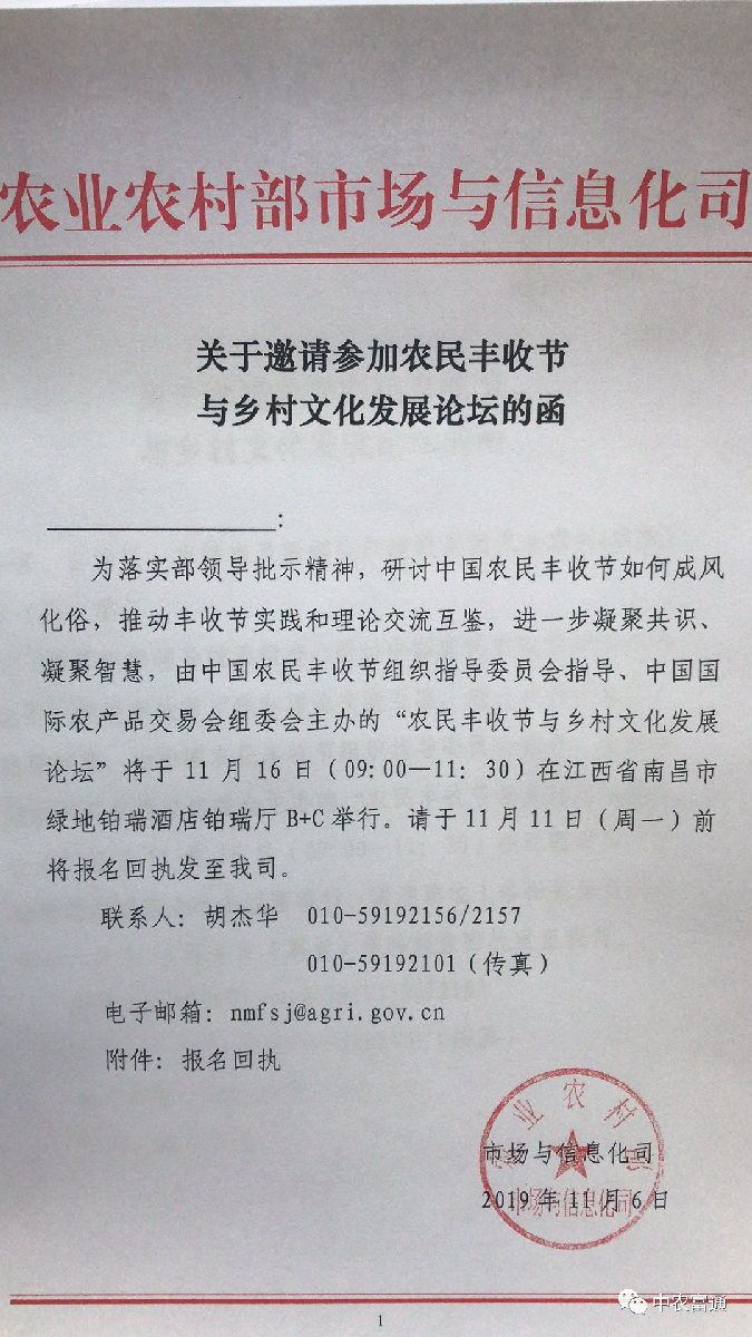 ▼由中國農(nóng)民豐收節(jié)組織指導(dǎo)委員會指導(dǎo),第十七屆中國國際農(nóng)產(chǎn)品交易會組委會主辦,江西省南昌市人民政府與中國農(nóng)業(yè)大學(xué)農(nóng)業(yè)規(guī)劃科學(xué)研究所承辦的“春華秋實話嘉年”農(nóng)民豐收節(jié)與鄉(xiāng)村文化發(fā)展論壇籌備工作進(jìn)展順利,將于2019年11月16日 09:00-11:30在江西·南昌 綠地鉑瑞酒店鉑瑞廳B+C舉行,誠邀您的參加!