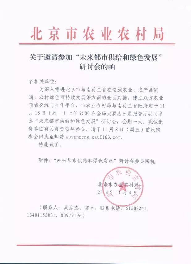 ▼由北京市農(nóng)業(yè)農(nóng)村局、荷蘭南荷蘭省政府、荷蘭駐中國大使館主辦,北京市農(nóng)林科學(xué)院、北京中農(nóng)富通園藝有限公司、荷蘭企業(yè)局、荷中商務(wù)促進(jìn)有限公司承辦,荷蘭都市可持續(xù)聯(lián)盟提供支持的中荷“未來都市供給和綠色發(fā)展”研討會,將于2019年11月18日在北京金碼大酒店舉行,各項籌備工作進(jìn)展順利,誠邀您的參會。點擊了解詳情!