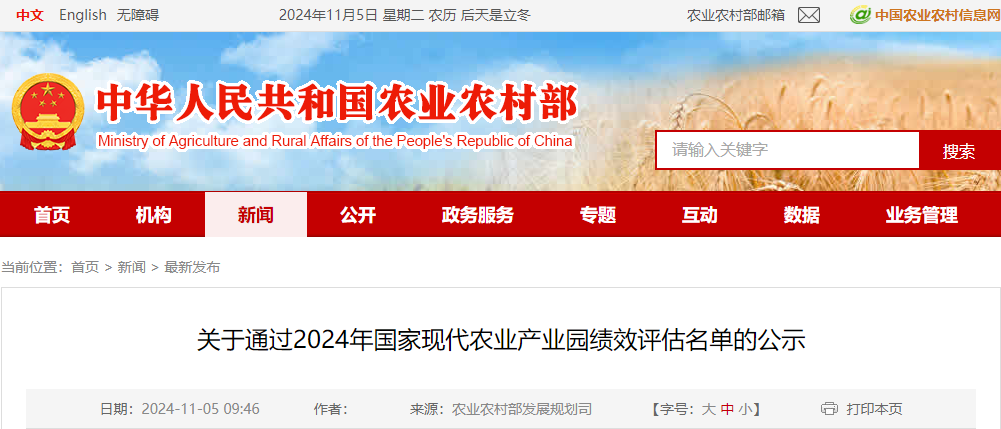 按照《農(nóng)業(yè)農(nóng)村部辦公廳關(guān)于開(kāi)展2022年批準(zhǔn)建設(shè)的國(guó)家現(xiàn)代農(nóng)業(yè)產(chǎn)業(yè)園績(jī)效評(píng)估工作的通知》(農(nóng)辦規(guī)〔2024〕17號(hào))要求,經(jīng)產(chǎn)業(yè)園所在地人民政府申請(qǐng)、省級(jí)農(nóng)業(yè)農(nóng)......