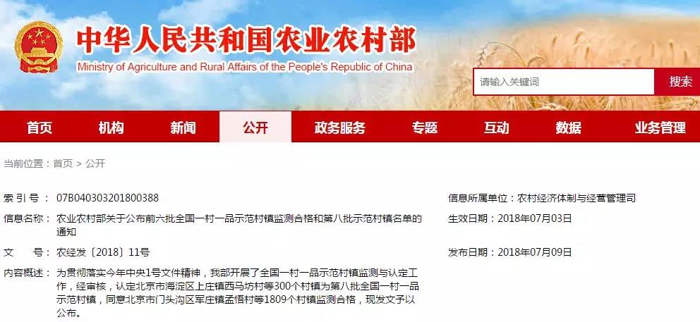 近日,農業(yè)農村部發(fā)布《關于公布前六批全國一村一品示范村鎮(zhèn)監(jiān)測合格和第八批示范村鎮(zhèn)名單的通知》 ...