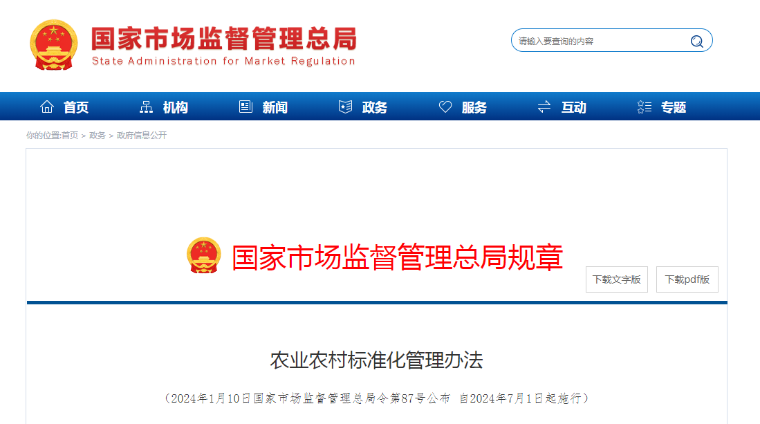 第一條 為了加強(qiáng)農(nóng)業(yè)農(nóng)村標(biāo)準(zhǔn)化工作,推進(jìn)農(nóng)業(yè)農(nóng)村現(xiàn)代化,根據(jù)《中華人民共和國(guó)標(biāo)準(zhǔn)化法》,制定本辦法。第二條 本辦法所稱農(nóng)業(yè)農(nóng)村標(biāo)準(zhǔn)(含標(biāo)準(zhǔn)樣品),是指種植業(yè)、林......