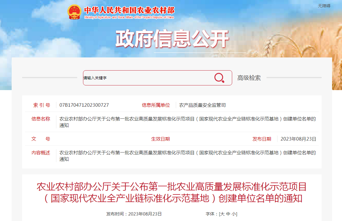 各省、自治區(qū)、直轄市農(nóng)業(yè)農(nóng)村(農(nóng)牧)廳(局、委),新疆生產(chǎn)建設(shè)兵團農(nóng)業(yè)農(nóng)村局:按照《農(nóng)業(yè)農(nóng)村部關(guān)于開展國家現(xiàn)代農(nóng)業(yè)全產(chǎn)業(yè)鏈標(biāo)準(zhǔn)化示范基地創(chuàng)建的通知》(農(nóng)質(zhì)發(fā)〔2......