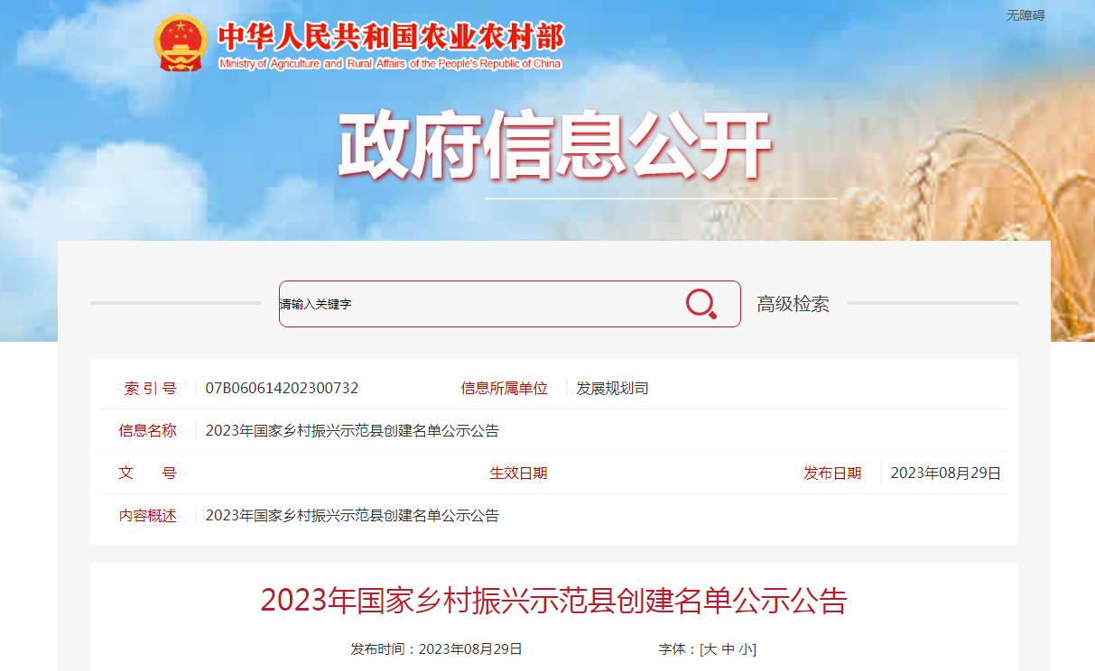 為貫徹落實《中共中央、國務(wù)院關(guān)于做好2023年全面推進鄉(xiāng)村振興重點工作的意見》部署,農(nóng)業(yè)農(nóng)村部開展第二批國家鄉(xiāng)村振興示范縣創(chuàng)建評審,經(jīng)地方推薦、專家評審,擬將北......