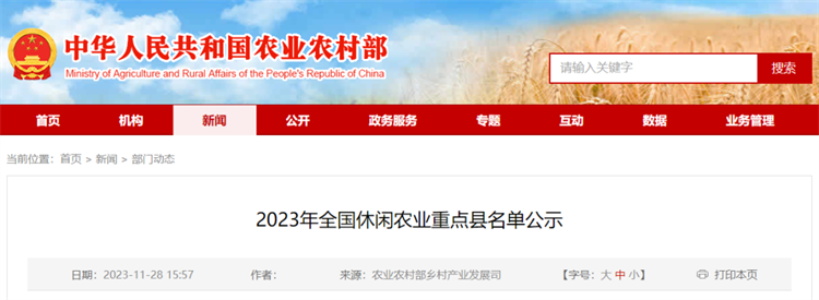 根據(jù)《農(nóng)業(yè)農(nóng)村部辦公廳關(guān)于開展2023年全國休閑農(nóng)業(yè)重點縣申報和監(jiān)測工作的通知》(農(nóng)辦產(chǎn)〔2023〕4號)要求,今年我部開展了全國休閑農(nóng)業(yè)重點縣建設(shè)工作。經(jīng)地方......